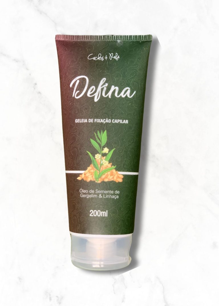 DEFINA: Geleia de fixação intensa e multifuncional, desenvolvida com ativos naturais para proporcionar alta definição, brilho, hidratação e longa durabilidade dos cachos. O óleo de rícino promove nutrição e ajuda no combate ao frizz. O óleo de gergelim oferece leveza e proteção contra agressões externas para os fios. O extrato de linhaça e cupuaçu, potencializa a definição, garantindo maciez e modelagem natural dos cachos.